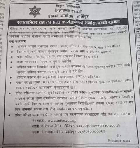 स्नातकोत्तर तहमा M. Ed. भर्नाको सूचना